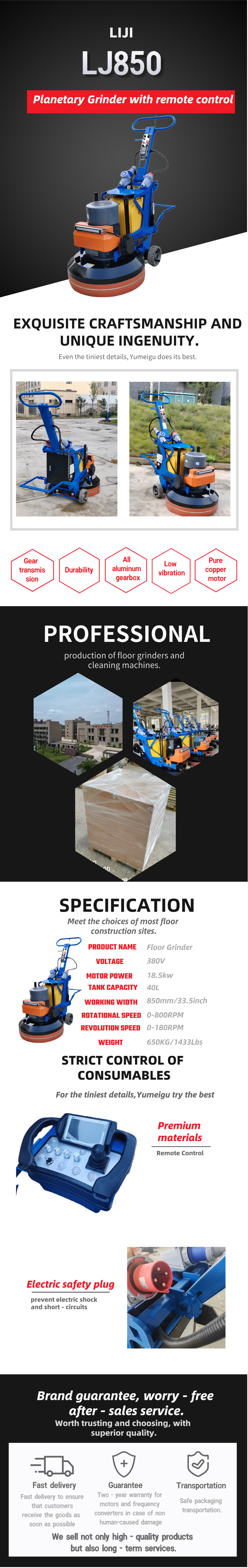 LJ850 Heavy-duty Concrete Grinder、Planetary Concrete Polisher、Industrial Floor Grinding Machine