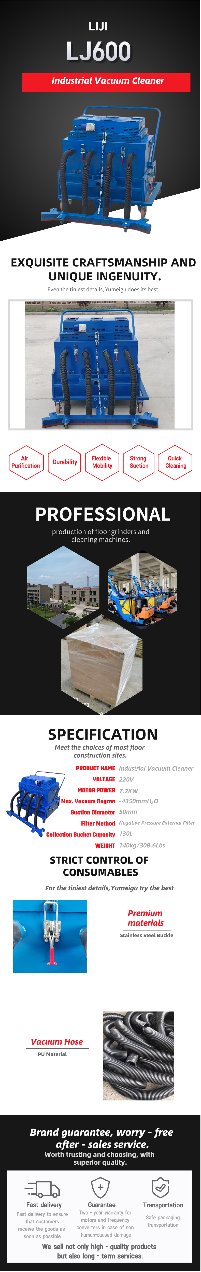LJ600 Industrial Vacuum Cleaner、Explosion-proof Industrial Vacuum Cleaner